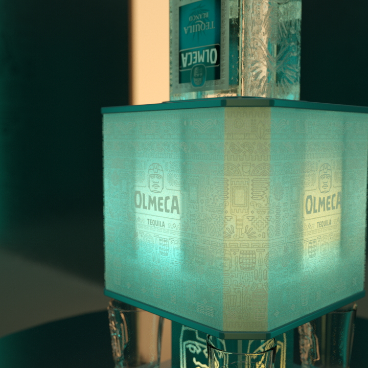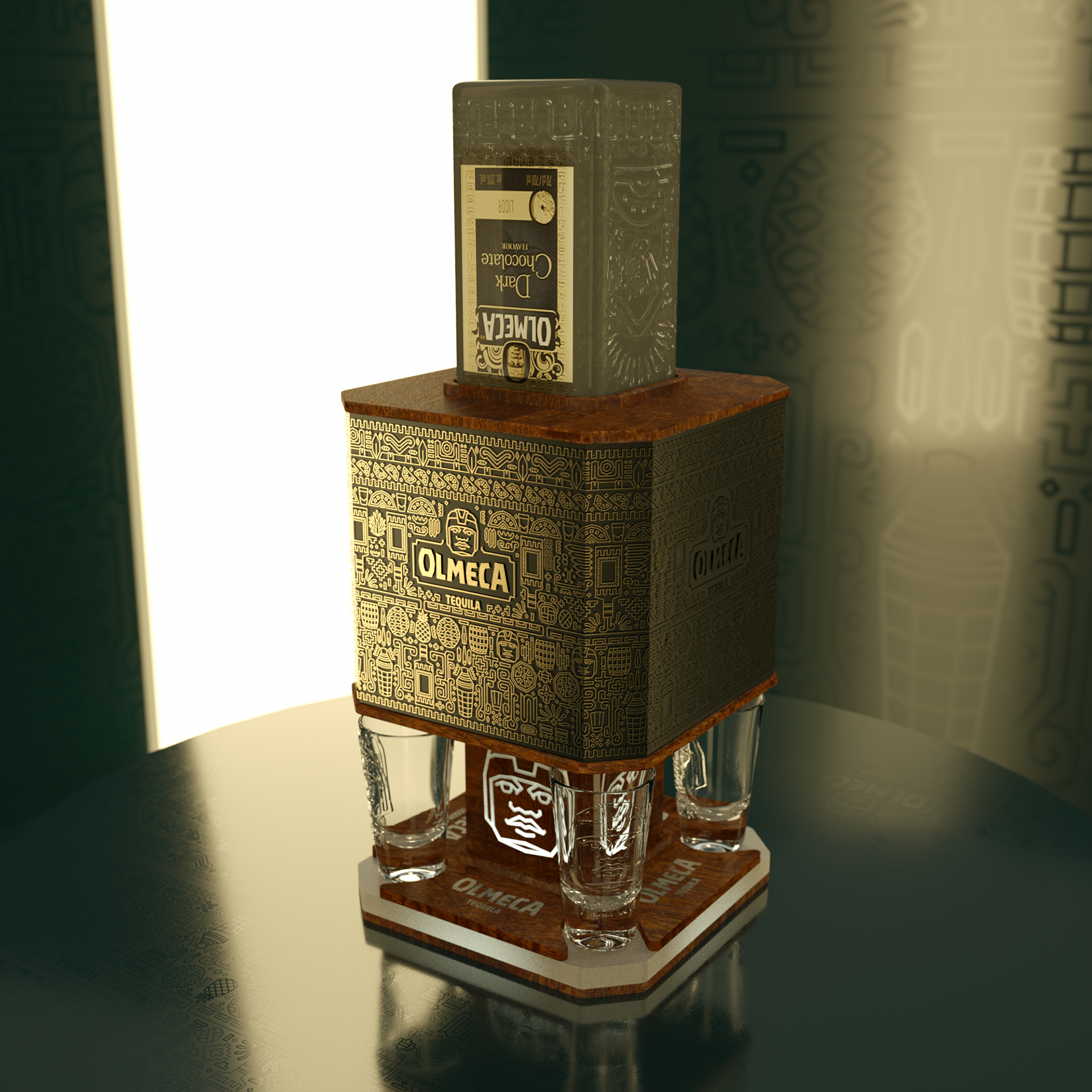 Service dispenser with smart RGB lights that can fill 4 shot glasses at the same time.